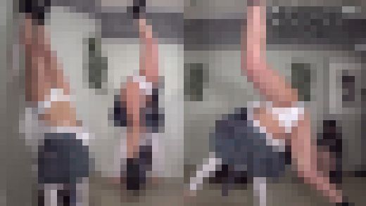 ほとんど股下が無い上にプリーツスカートの為、何度も何度もお尻が丸出しです。