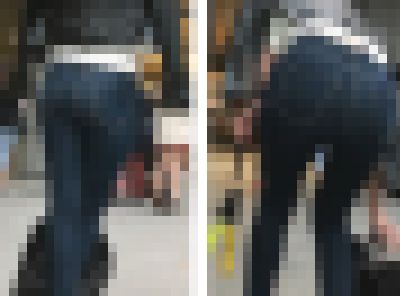 Tバックからハミ出すお尻のお肉が丸わかりだ。収録人数:2名