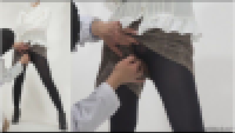 次にシートを(写真6)のようにお尻を突き出して広げている時のパンツラインを撮影。