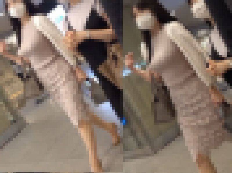 溢れGカップニット乳を揺らす爆乳美女!