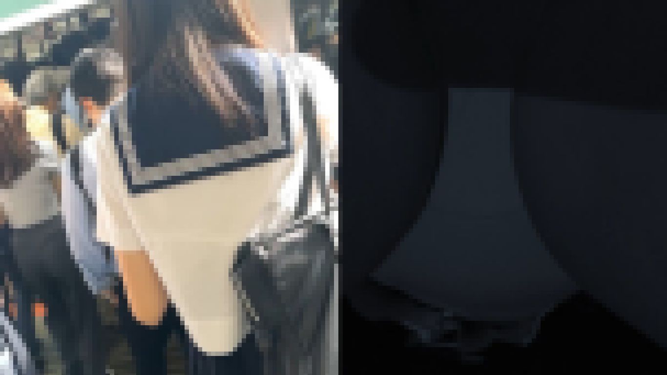 白パンツから張り出す美ヒップ感。
