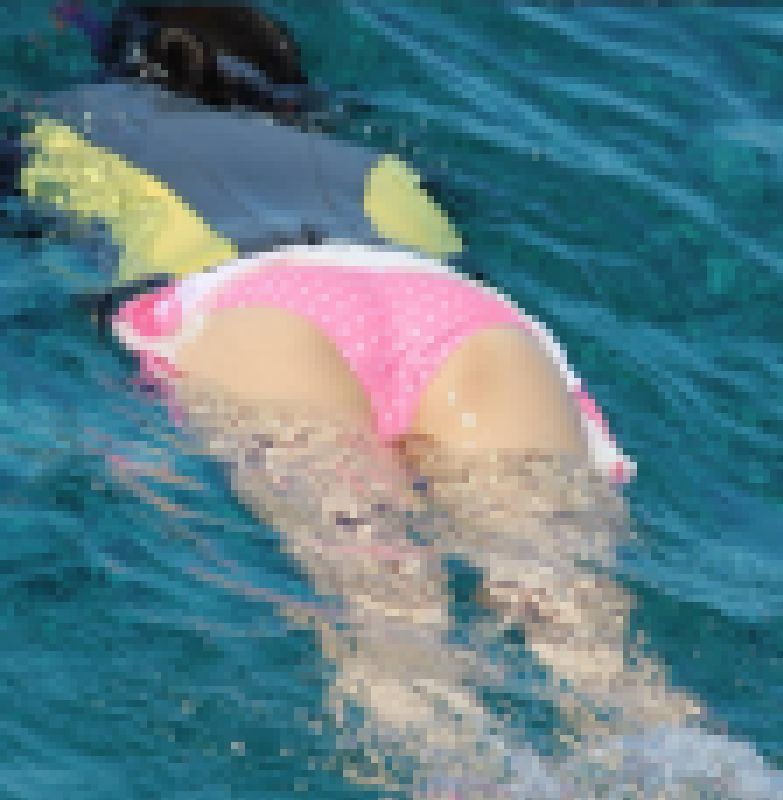 しかもTバックで、水着の日焼跡がクッキリと...
