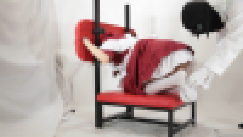 フェチ動画オーダーメイドSM拘束くすぐりフェチ 拘束台に頭と手を固定して脇、腹、首、足裏をくすぐるf695