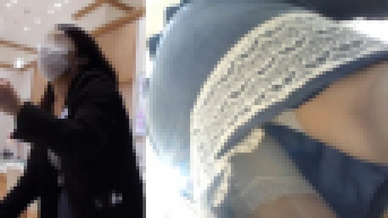 【 スマホで逆さ撮り134】韓国美人のお姉さん メガネと黒タイツが素敵ですね スカートの中見せて下さい!2カメ撮影【2名収録】